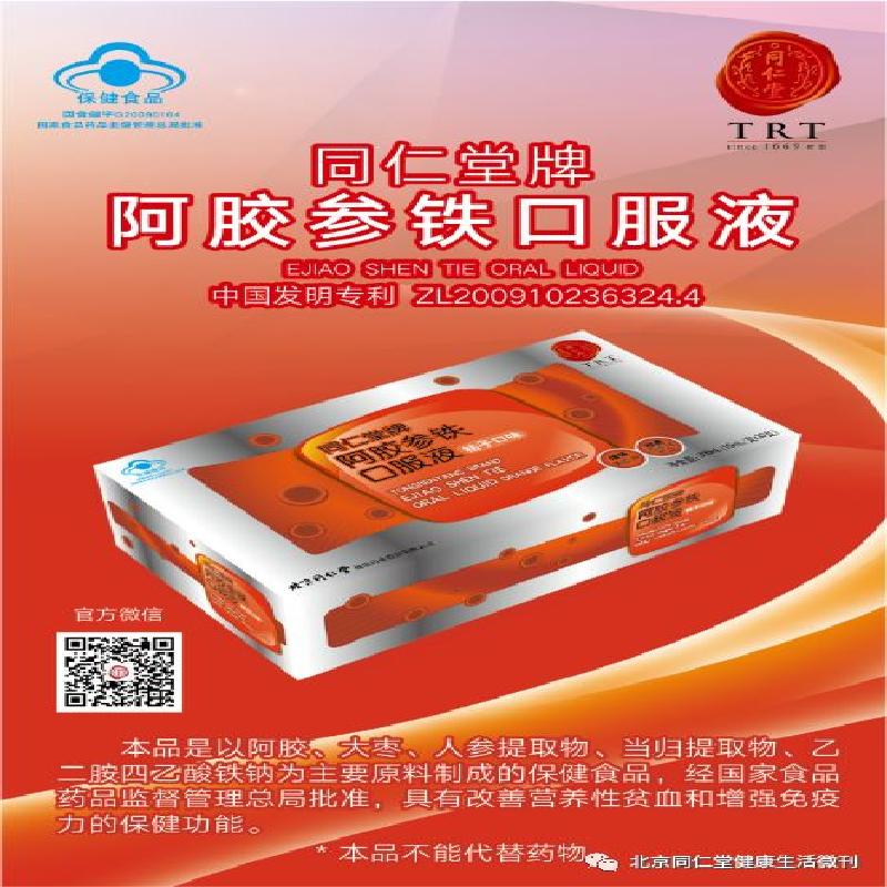 本品是以阿胶、大枣、人参提取物、当归提取物、乙二胺四乙酸铁钠、蜂蜜、桔子粉末香精、纯化水为主要原料制成的保健食品,经动物和人体试食功能试验证明,具有改善营养性贫血的保健功能;经动物功能试验证明,具有增强免疫力的保健功能。